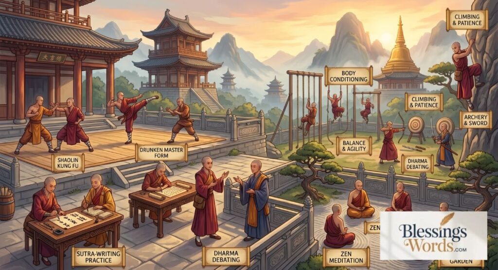 Historically, monks focused on balance, peace, and martial discipline.